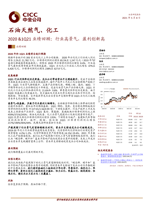 【中金公司】【20210508】石油天然气、化工:2020&1Q21业绩回顾:行业高景气,盈利创新高-13页