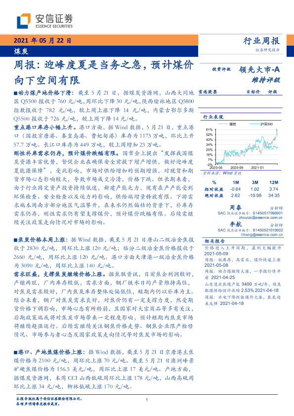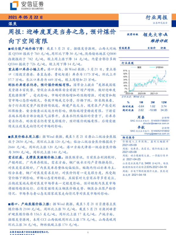 【安信证券】【20210522】20210522-安信证券-煤炭行业周报:迎峰度夏是当务之急,预计煤价向下空间有限-21页