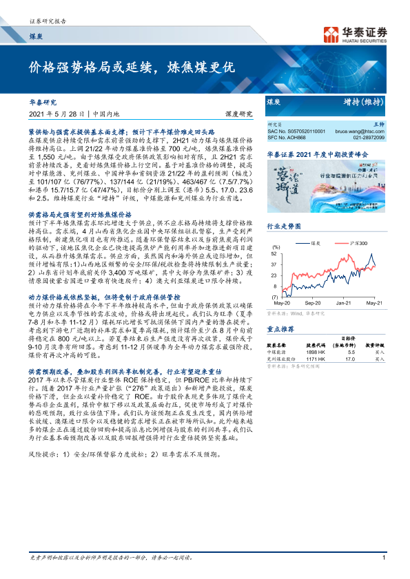【华泰证券】【20210528】20210528-华泰证券-煤炭行业深度研究:价格强势格局或延续,炼焦煤更优-19页