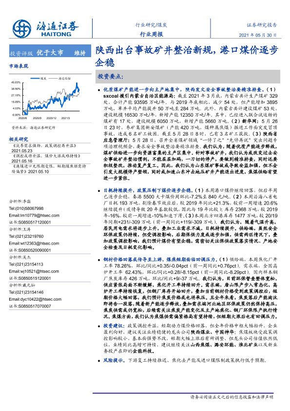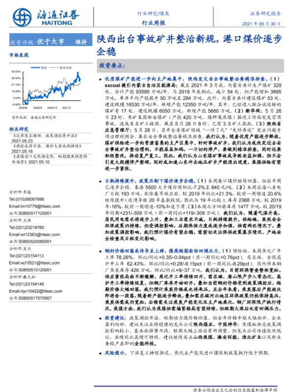 【海通证券】【20210530】20210530-海通证券-煤炭行业周报:陕西出台事故矿井整治新规,港口煤价逐步企稳-2页