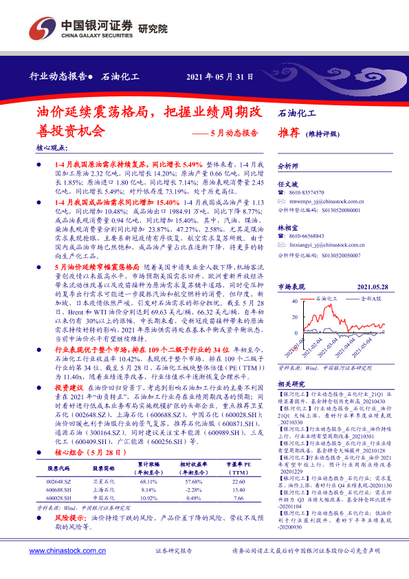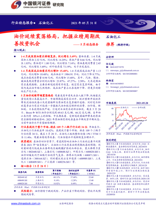 【银河证券】【20210531】油价延续震荡格局,把握业绩周期改善投资机会——5月动态报告-22页