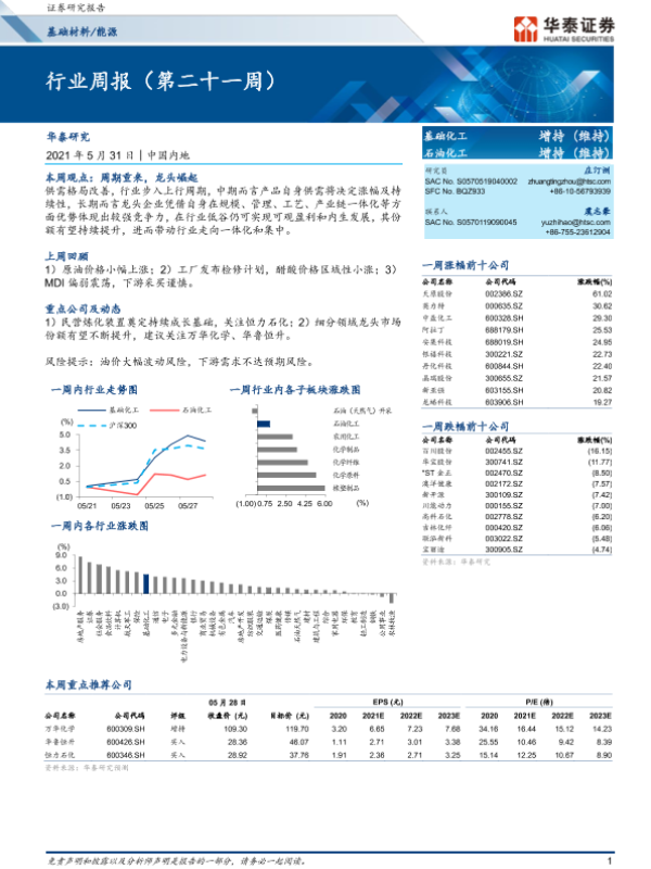 【华泰证券】【20210531】20210531-华泰证券-基础化工 石油化工行业周报(第二十一周)-13页