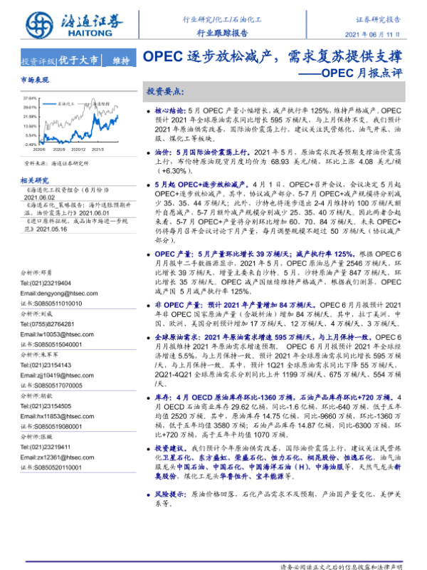 【海通证券】【20210611】20210611-海通证券-石油化工行业跟踪报告:OPEC月报点评-OPEC逐步放松减产,需求复苏提供支撑-5页