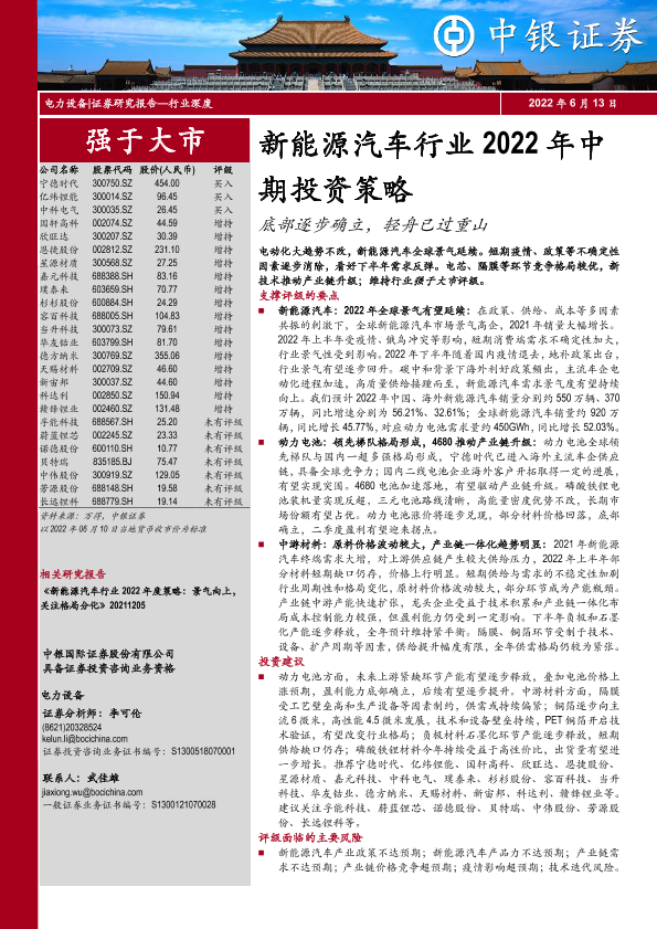 【中银证券】【20220613】新能源汽车行业2022年中期投资策略:底部逐步确立,轻舟已过重山-41页
