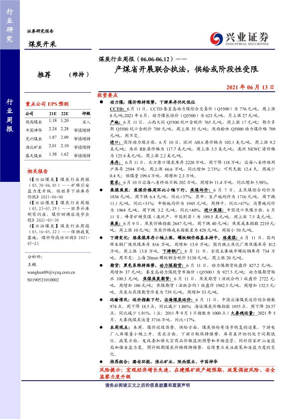 【兴业证券】【20210613】煤炭行业周报(06.06-06.12)——产煤省开展联合执法,供给或阶段性受限-12页