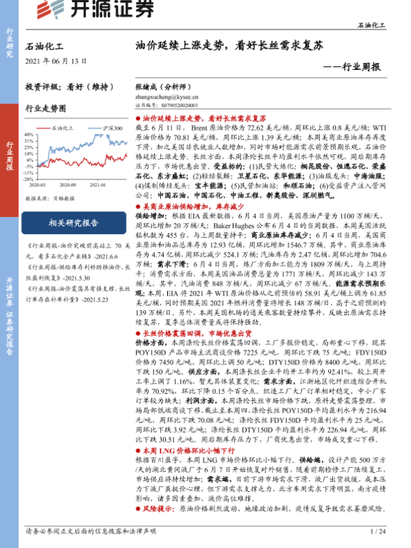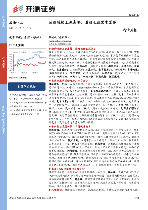 【开源证券】【20210613】石油化工行业周报:油价延续上涨走势,看好长丝需求复苏-24页