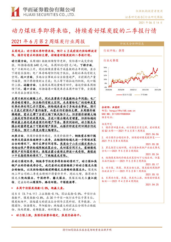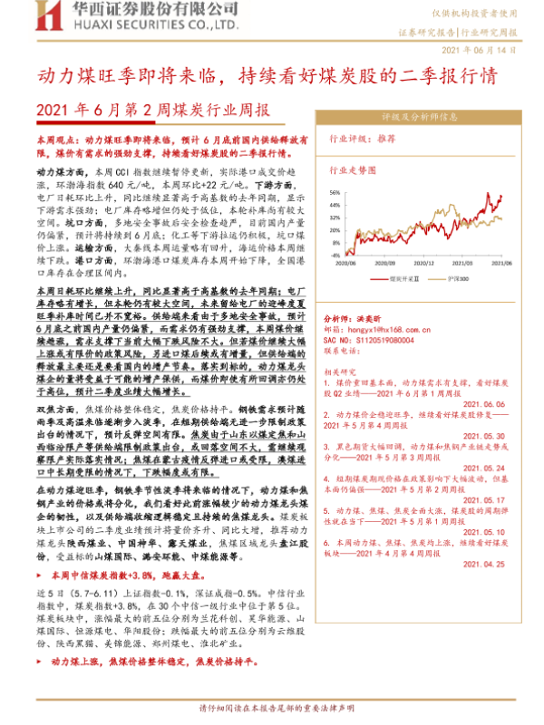 【华西证券】【20210614】2021年6月第2周煤炭行业周报:动力煤旺季即将来临,持续看好煤炭股的二季报行情-23页