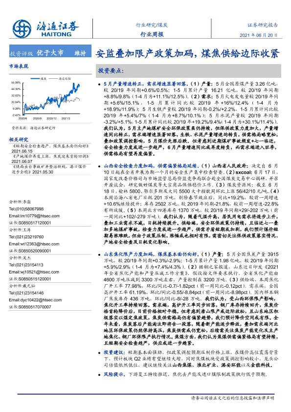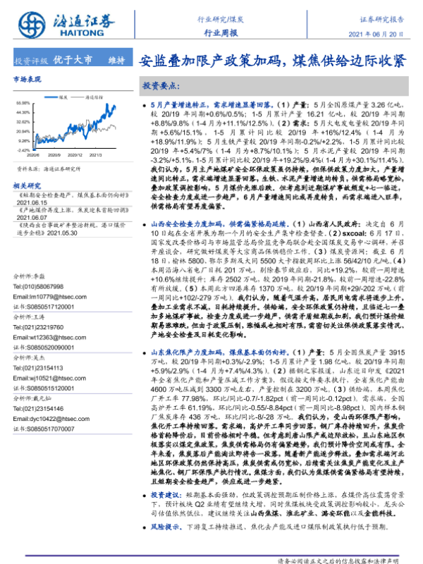 【海通证券】【20210620】20210620-海通证券-煤炭行业周报:安监叠加限产政策加码,煤焦供给边际收紧-2页