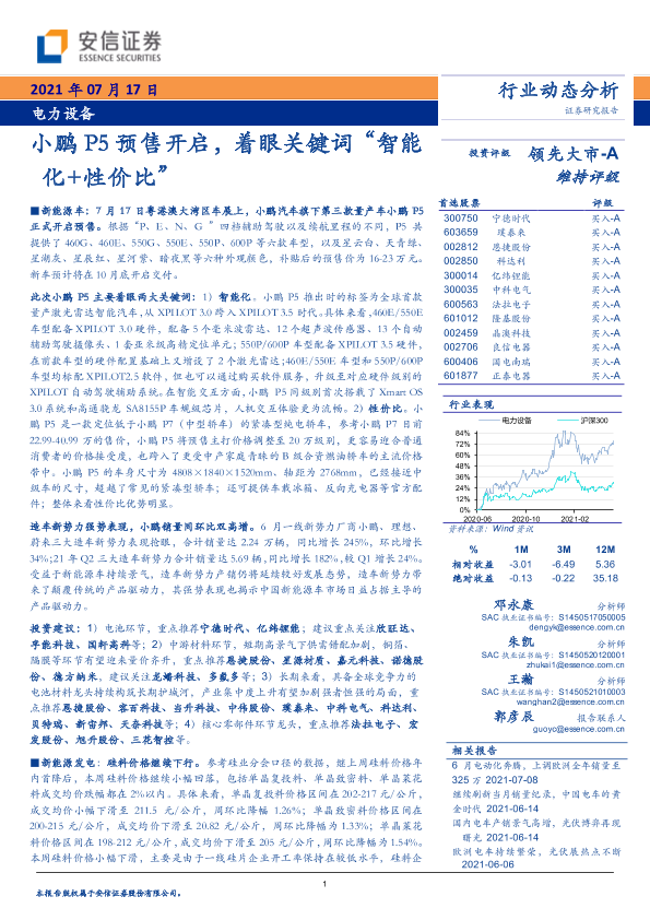 【安信证券】【20210717】电力设备行业:小鹏P5预售开启,着眼关键词“智能化+性价比”-29页