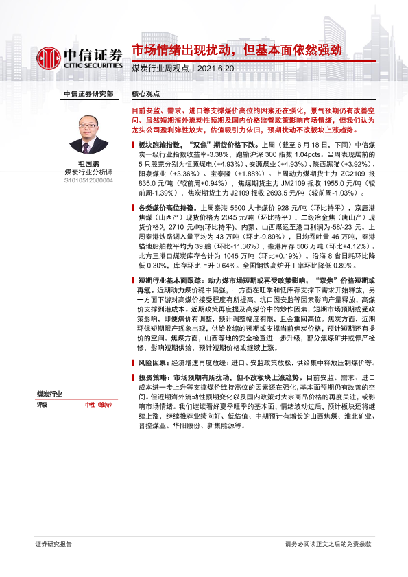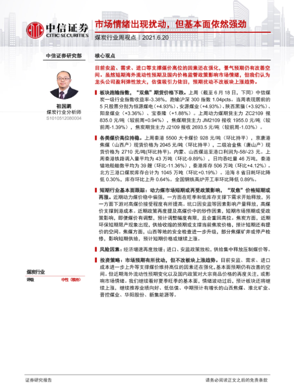 【中信证券】【20210620】煤炭行业周观点:市场情绪出现扰动,但基本面依然强劲-7页