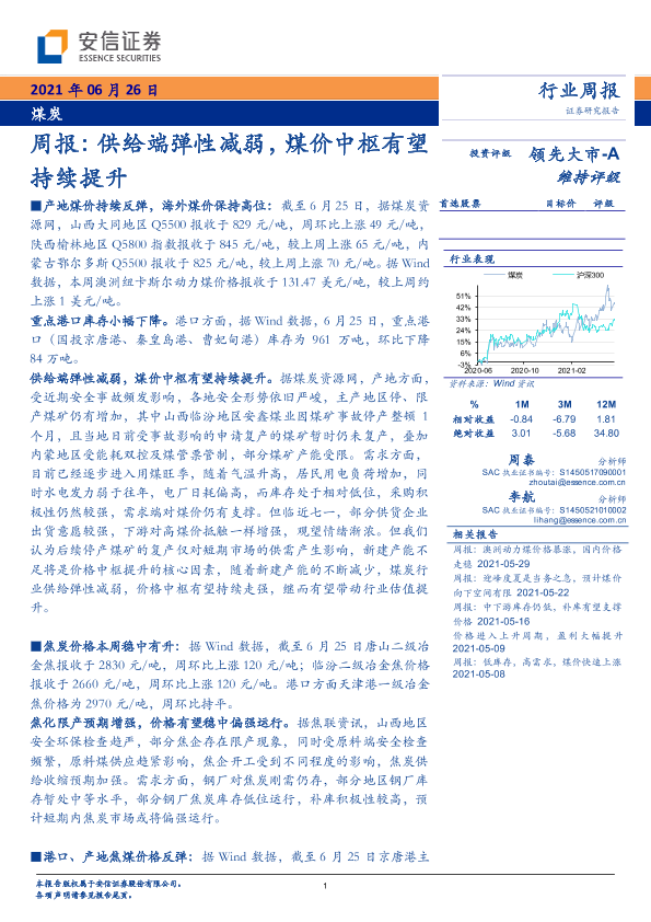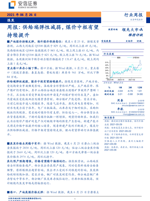 【安信证券】【20210626】20210626-安信证券-煤炭周报: 供给端弹性减弱,煤价中枢有望持续提升-23页