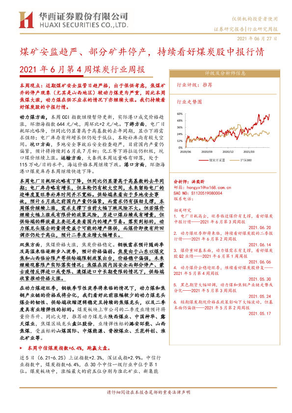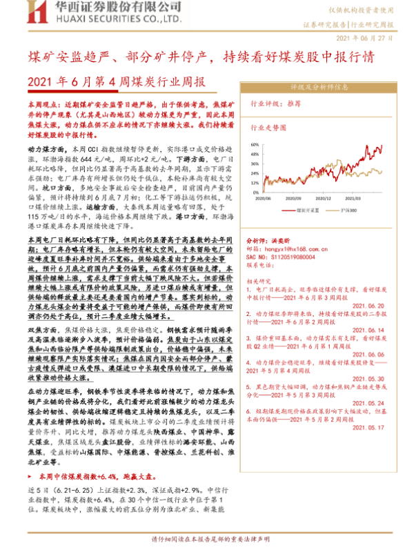 【华西证券】【20210627】2021年6月第4周煤炭行业周报:煤矿安监趋严、部分矿井停产,持续看好煤炭股中报行情-22页