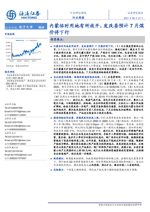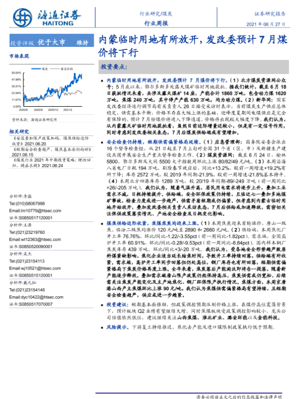 【海通证券】【20210627】20210627-海通证券-煤炭行业周报:内蒙临时用地有所放开,发改委预计7月煤价将下行-2页