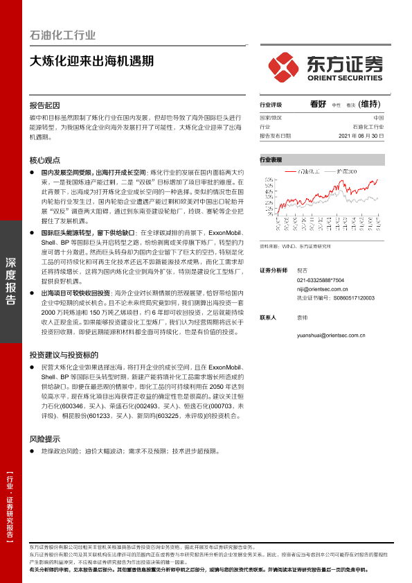 【东方证券】【20210630】石油化工行业:大炼化迎来出海机遇期-15页