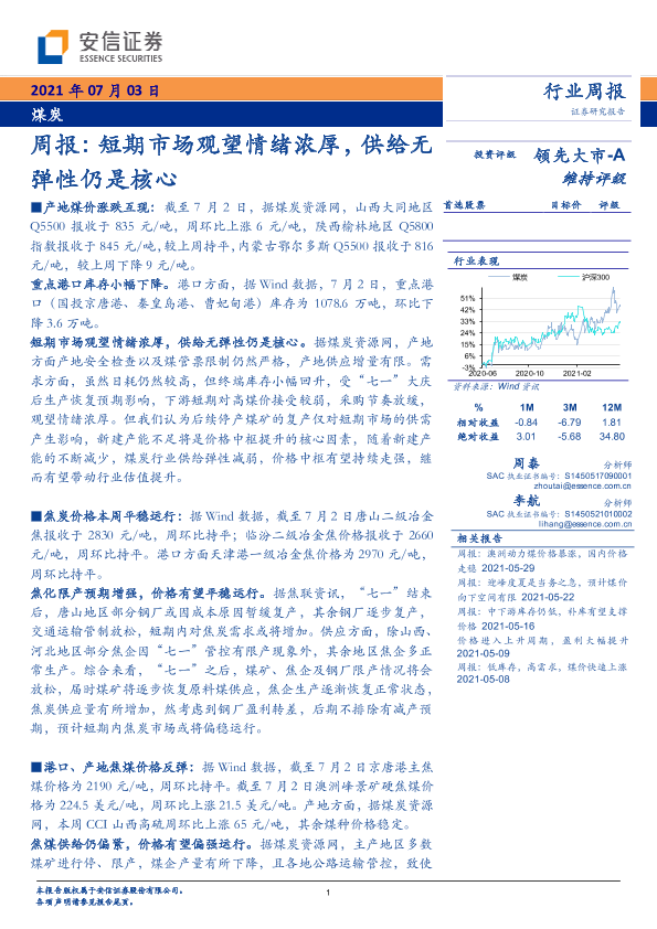 【安信证券】【20210703】20210703-安信证券-煤炭周报:短期市场观望情绪浓厚,供给无弹性仍是核心-23页