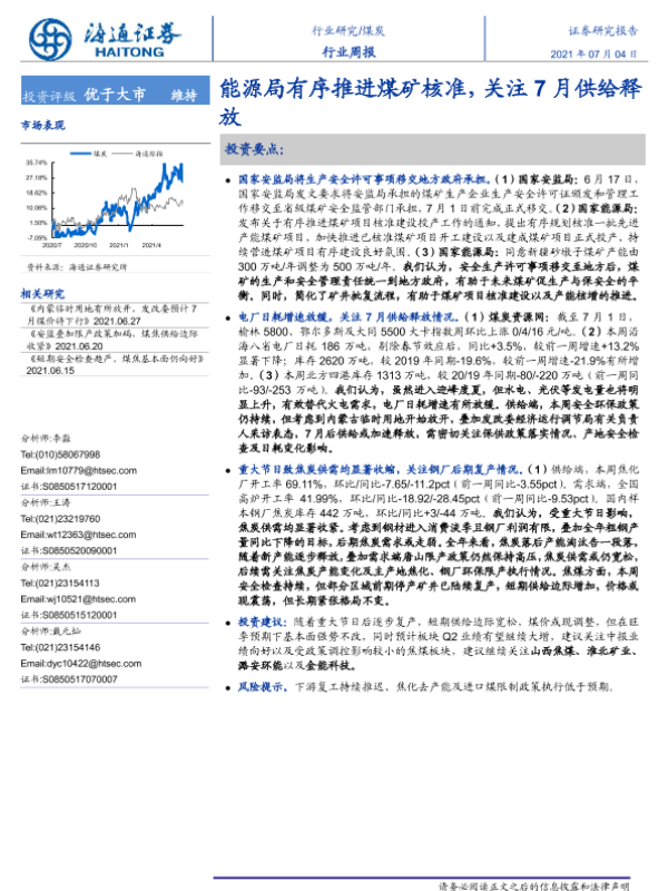 【海通证券】【20210704】20210704-海通证券-煤炭行业周报:能源局有序推进煤矿核准,关注7月供给释放-2页