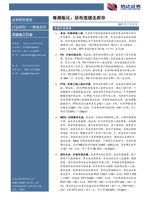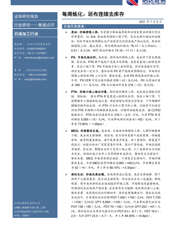 【信达证券】【20210705】每周炼化:坯布连续去库存-9页