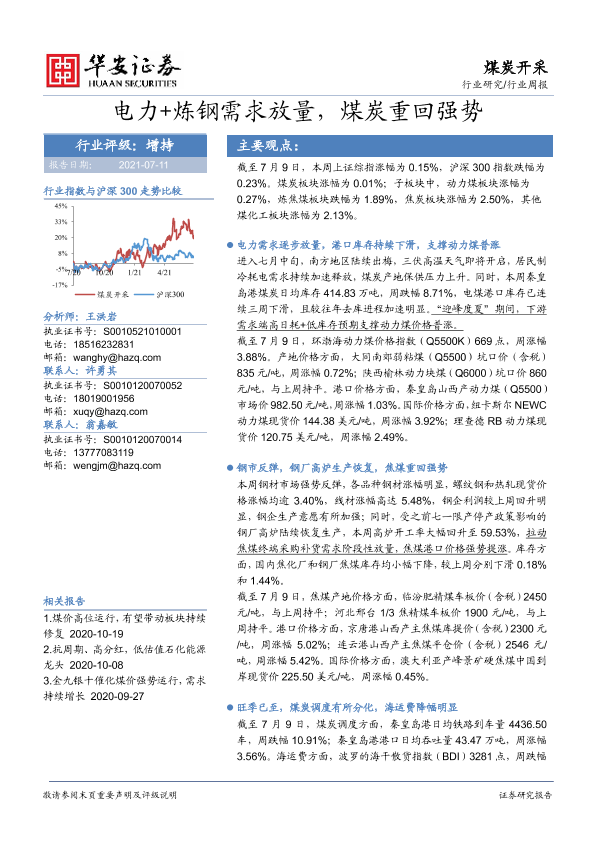 【华安证券】【20210711】20210711-华安证券-煤炭开采行业周报:电力+炼钢需求放量,煤炭重回强势-18页