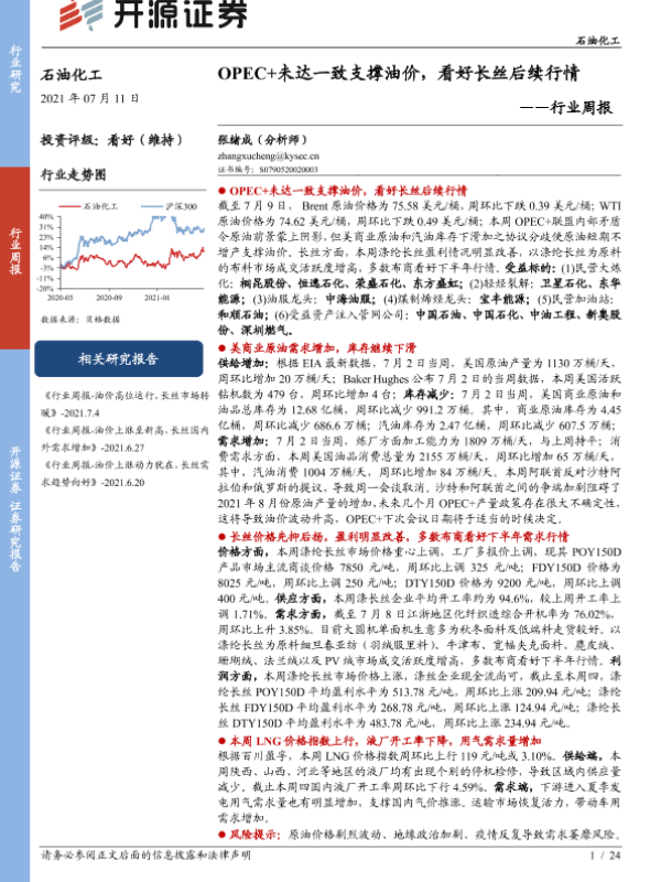 【开源证券】【20210711】20210711-开源证券-石油化工行业周报:OPEC+未达一致支撑油价,看好长丝后续行情-24页