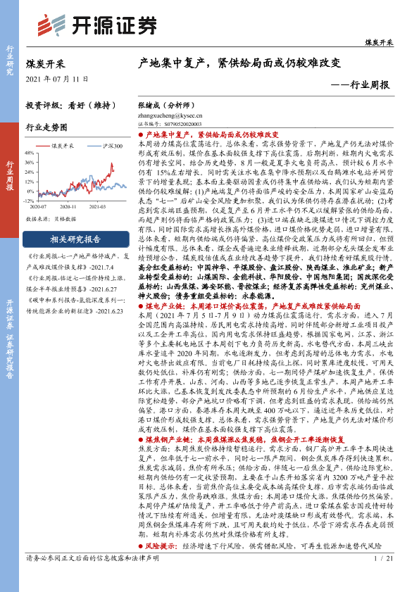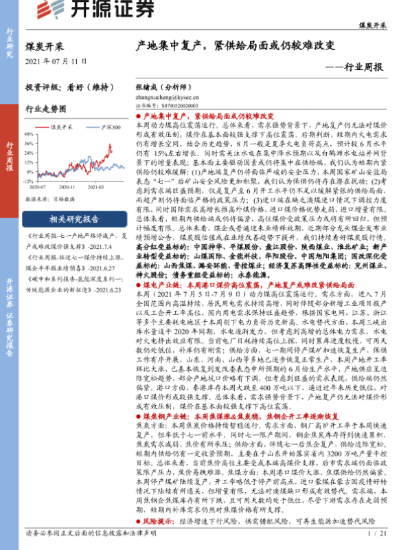 【开源证券】【20210711】煤炭开采行业周报:产地集中复产,紧供给局面或仍较难改变-21页