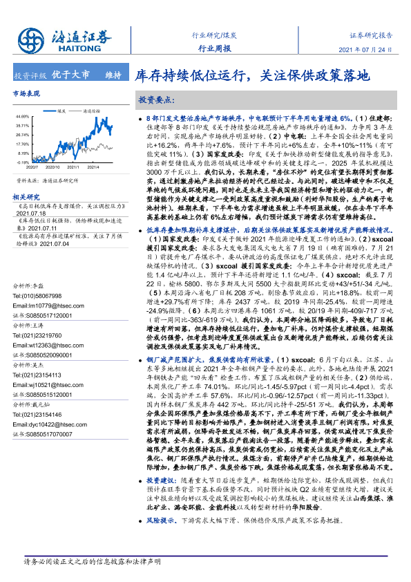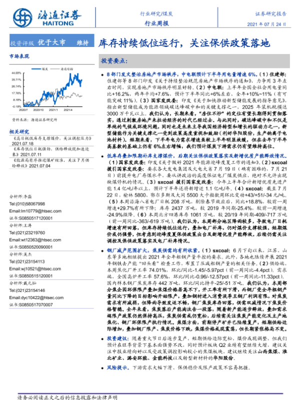 【海通证券】【20210724】20210724-海通证券-煤炭行业周报:库存持续低位运行,关注保供政策落地-2页