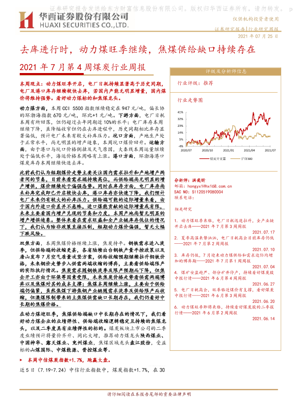 【华西证券】【20210725】2021年7月第4周煤炭行业周报:去库进行时,动力煤旺季继续,焦煤供给缺口持续存在-21页