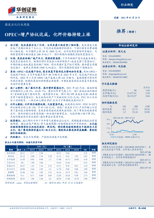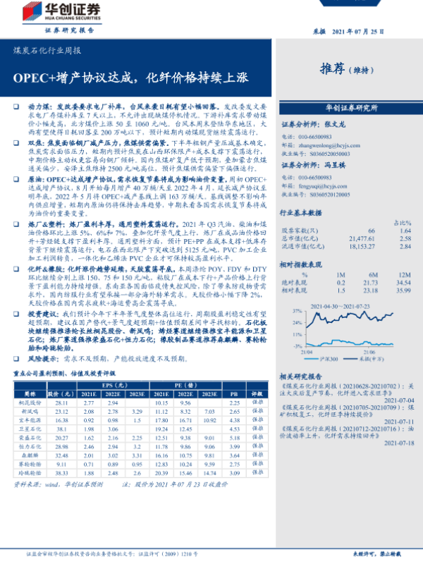 【华创证券】【20210725】20210725-华创证券-煤炭石化行业周报:OPEC+增产协议达成,化纤价格持续上涨-19页