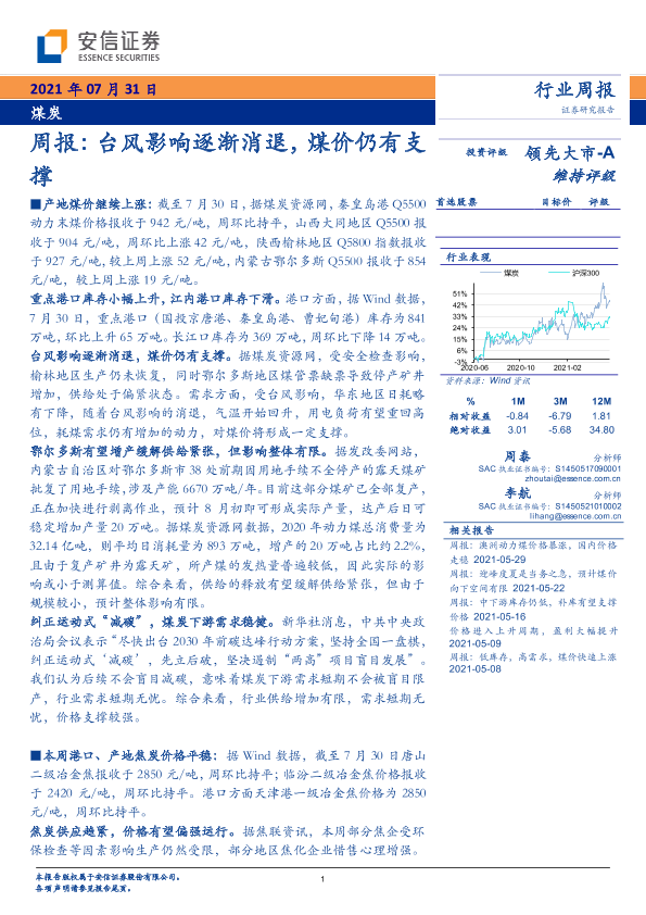 【安信证券】【20210731】20210731-安信证券-煤炭行业周报:台风影响逐渐消退,煤价仍有支撑-24页