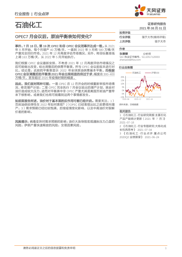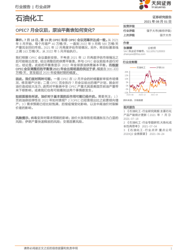 【天风证券】【20210801】石油化工行业点评:OPEC7月会议后,原油平衡表如何变化?-3页