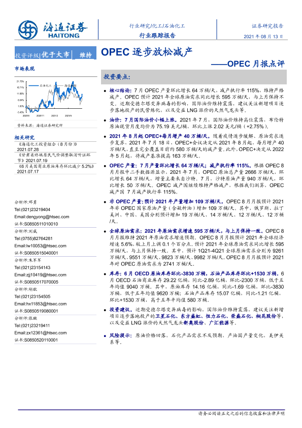 【海通证券】【20210813】海通证券-石油化工OPEC月报点评:OPEC逐步放松减产-5页