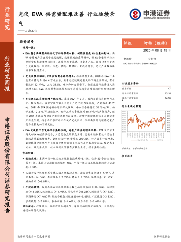 【申港证券】【20210815】20210815-申港证券-石油石化行业研究周报:光伏EVA供需错配难改善 行业延续景气-20页