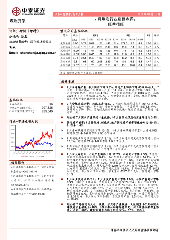 【中泰证券】【20210816】7月煤炭行业数据点评:旺季很旺-6页