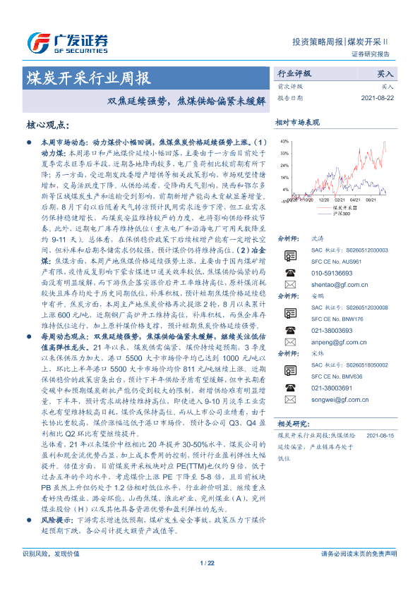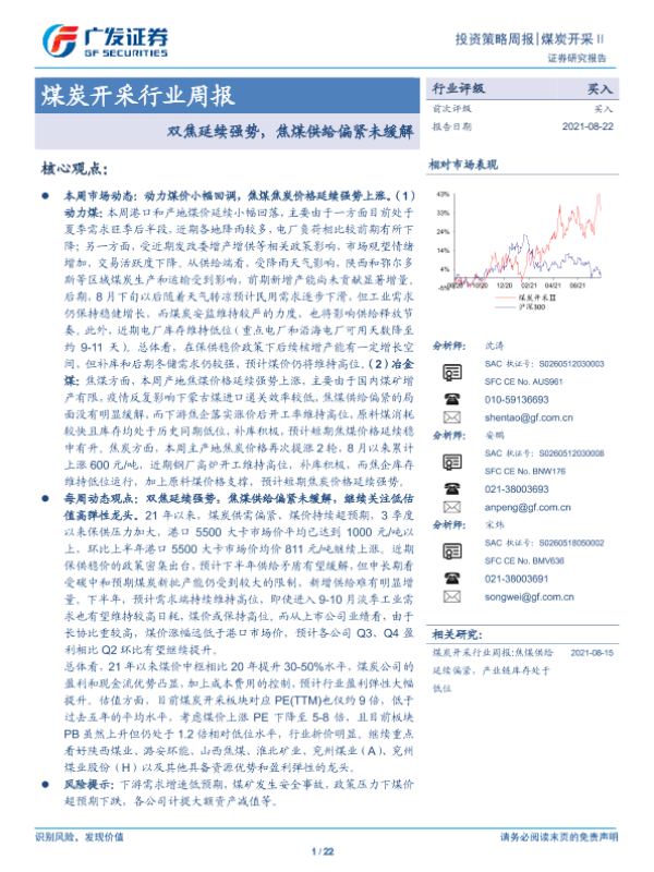 【广发证券】【20210822】20210822-广发证券-煤炭开采行业周报:双焦延续强势,焦煤供给偏紧未缓解-22页