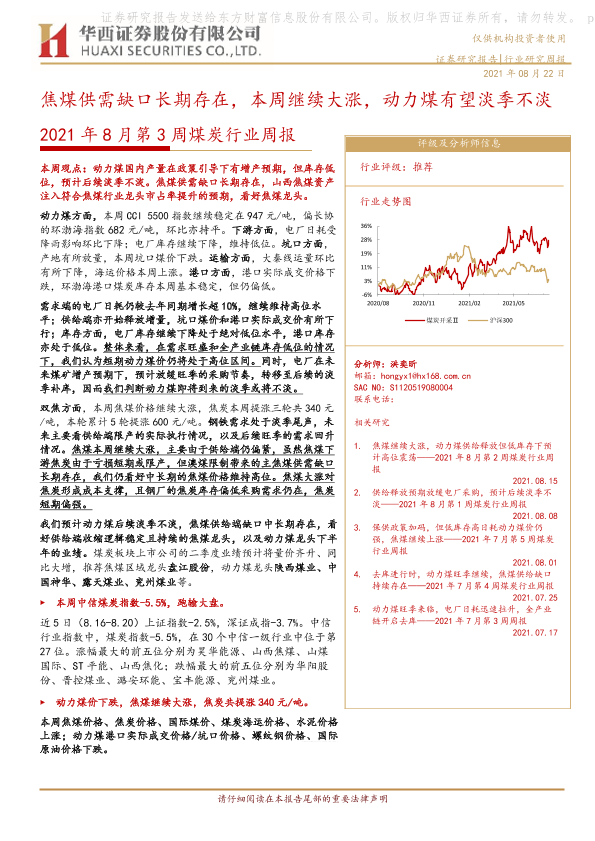 【华西证券】【20210822】2021年8月第3周煤炭行业周报:焦煤供需缺口长期存在,本周继续大涨,动力煤有望淡季不淡-22页