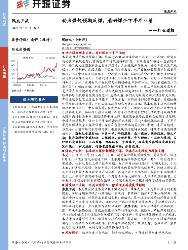 【开源证券】【20210828】行业周报:动力煤超预期反弹,看好煤企下半年业绩-21页