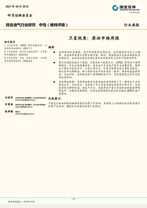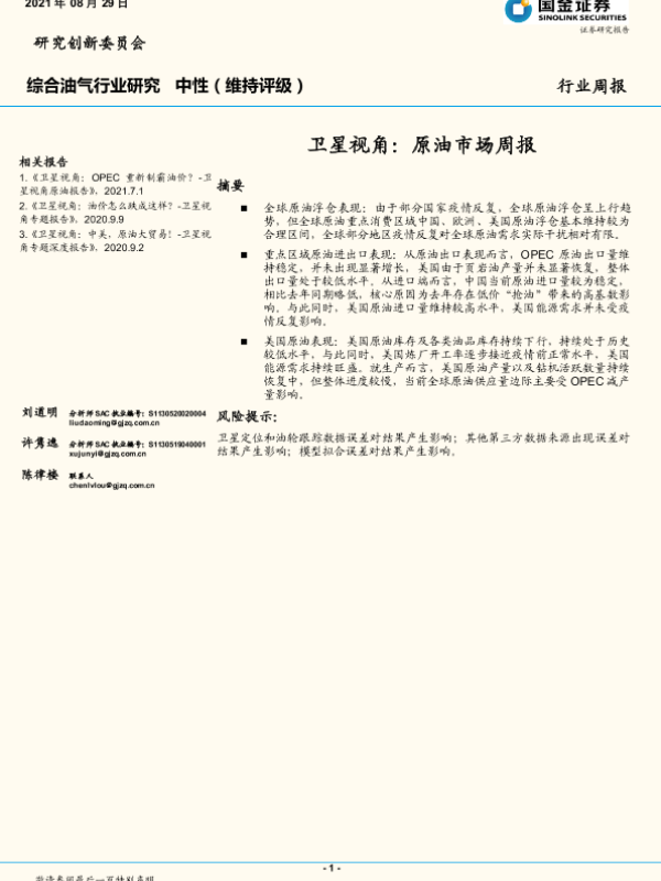 【国金证券】【20210829】综合油气行业:原油市场周报,卫星视角-10页
