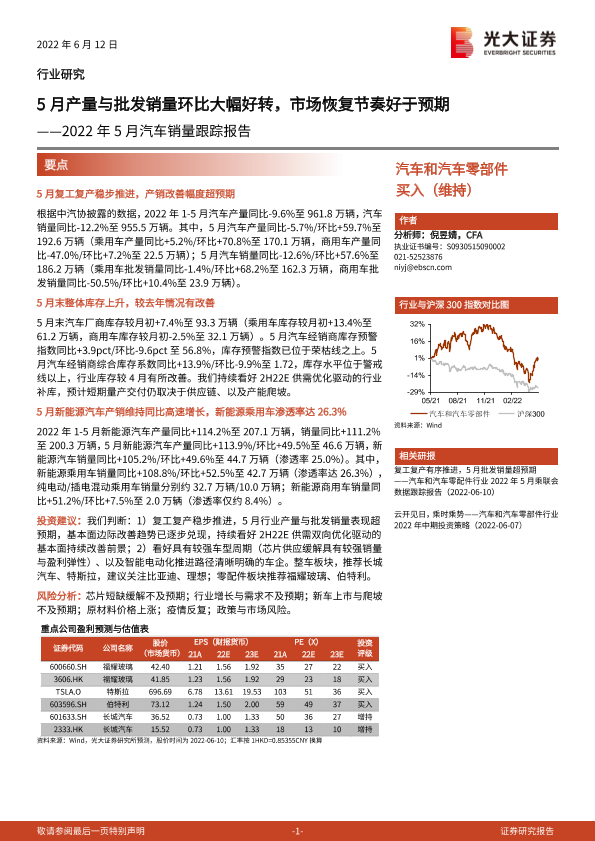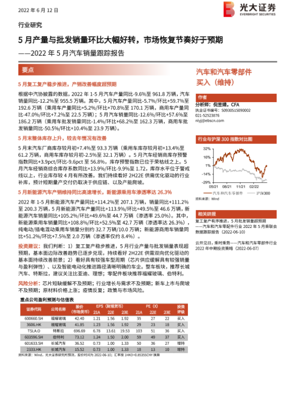 【光大证券】【20220612】汽车和汽车零部件行业2022年5月汽车销量跟踪报告-15页
