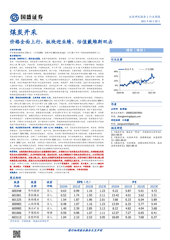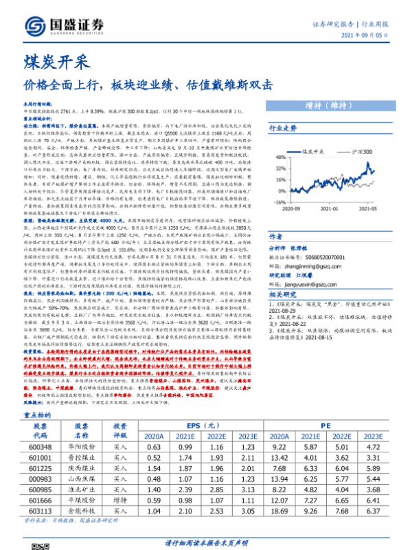 【国盛证券】【20210905】20210905-国盛证券-煤炭开采行业周报:价格全面上行,板块迎业绩、估值戴维斯双击-21页