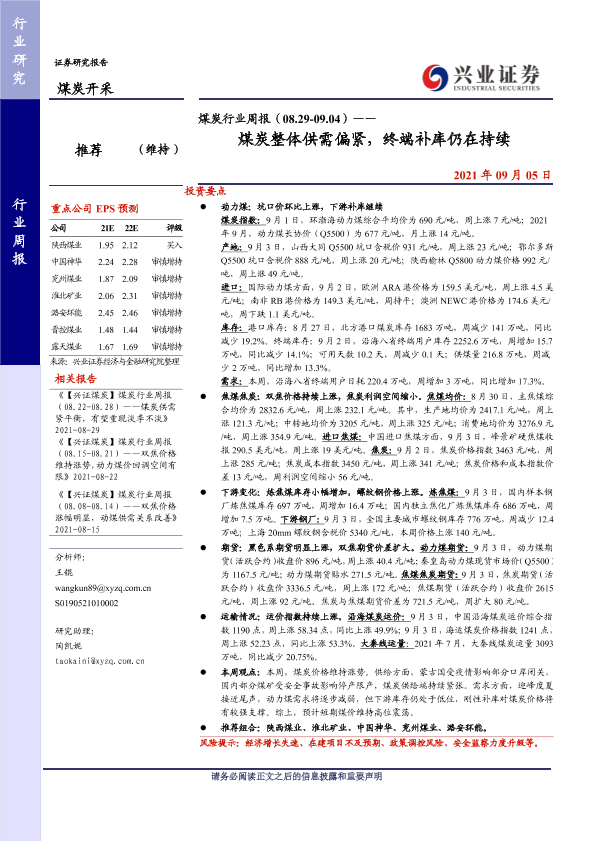 【兴业证券】【20210905】煤炭行业周报(08.29-09.04)——煤炭整体供需偏紧,终端补库仍在持续-10页