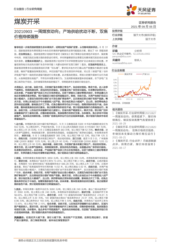 【天风证券】【20210905】一周煤炭动向:产地供给扰动不断,双焦价格持续强势-19页