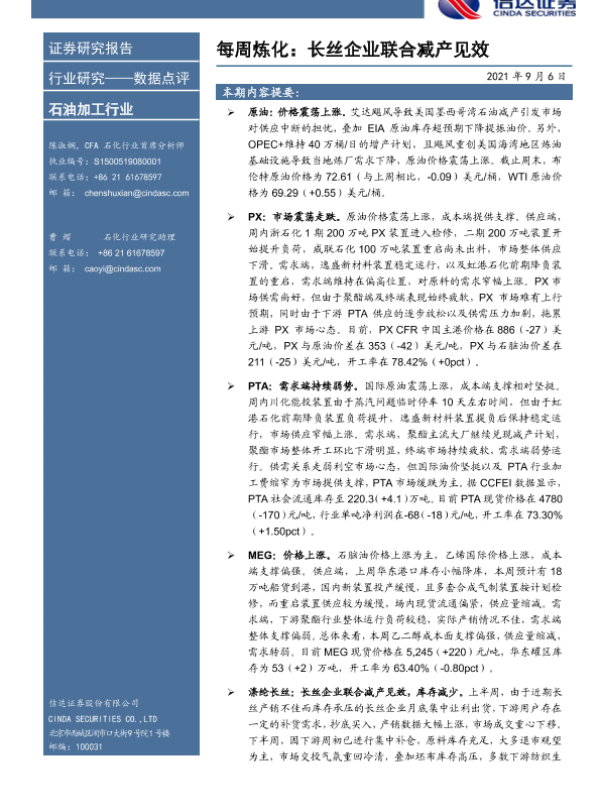 【信达证券】【20210906】每周炼化:长丝企业联合减产见效-9页