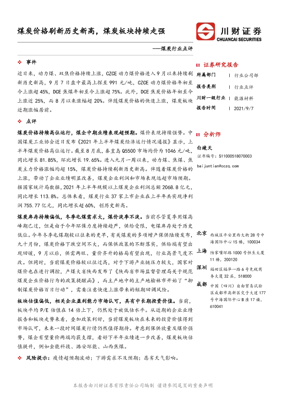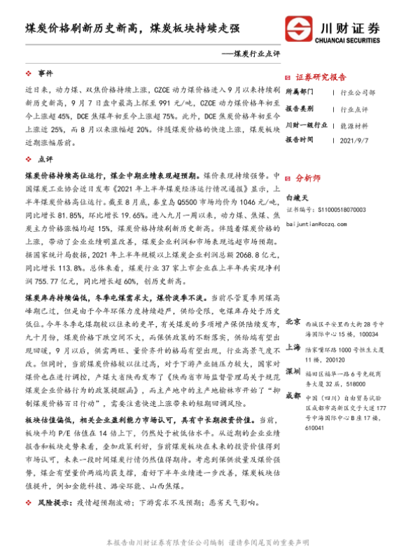 【川财证券】【20210907】煤炭行业点评:煤炭价格刷新历史新高,煤炭板块持续走强-2页