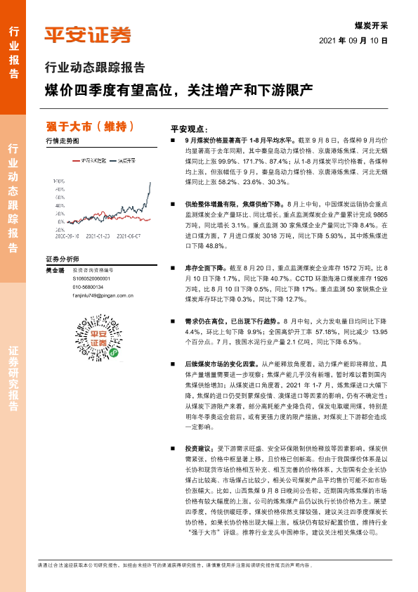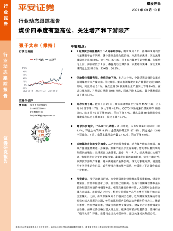 【平安证券】【20210910】20210910-平安证券-煤炭开采行业动态跟踪报告:煤价四季度有望高位,关注增产和下游限产-9页