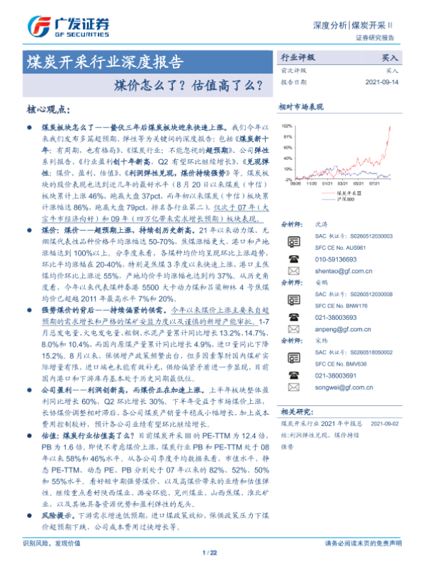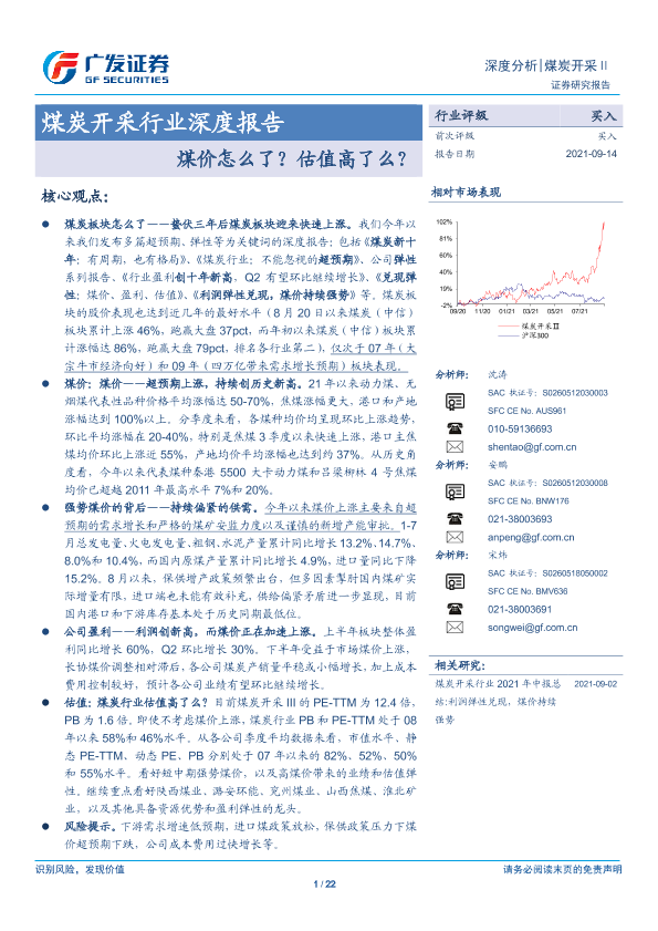 【广发证券】【20210914】20210914-广发证券-煤炭开采行业深度报告:煤价怎么了?估值高了么?-22页