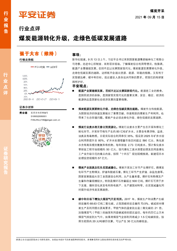 【平安证券】【20210915】煤炭开采行业点评:煤炭能源转化升级,走绿色低碳发展道路-3页