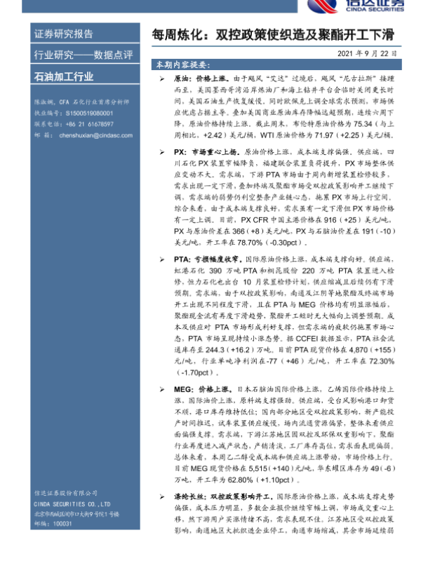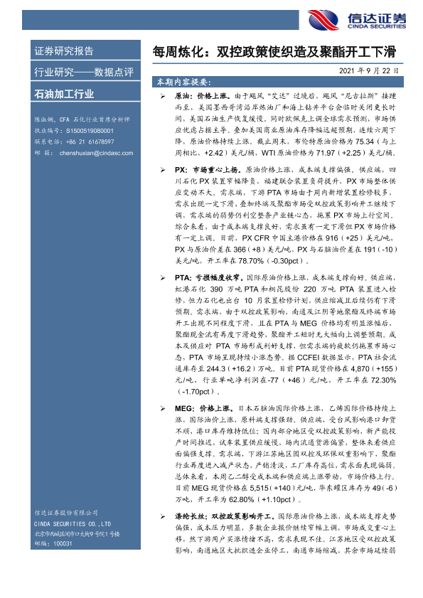 【信达证券】【20210922】每周炼化:双控政策使织造及聚酯开工下滑-9页