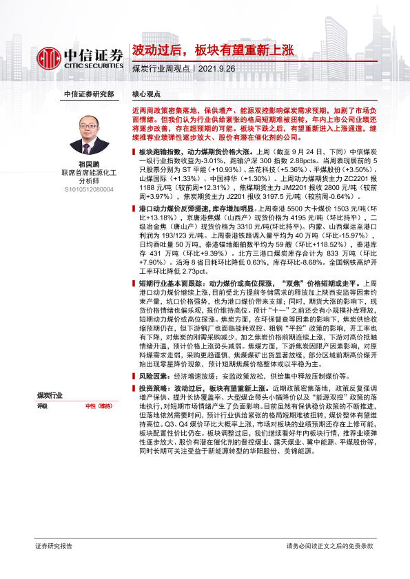【中信证券】【20210926】20210926-中信证券-煤炭行业周观点:波动过后,板块有望重新上涨-7页