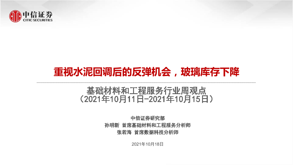 【中信证券】【20211018】20211018-中信证券-基础材料和工程服务行业周观点:重视水泥回调后的反弹机会,玻璃库存下降-52页