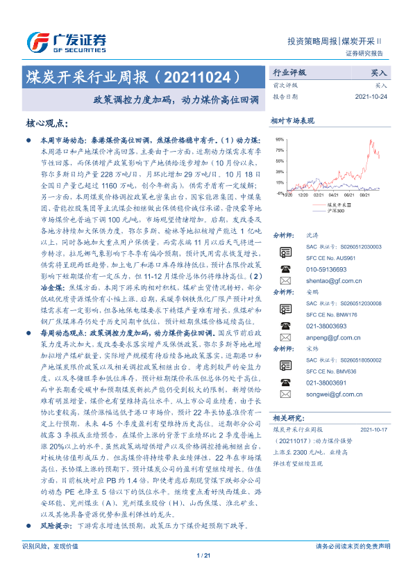 【广发证券】【20211024】20211024-广发证券-煤炭开采行业周报:政策调控力度加码,动力煤价高位回调-21页