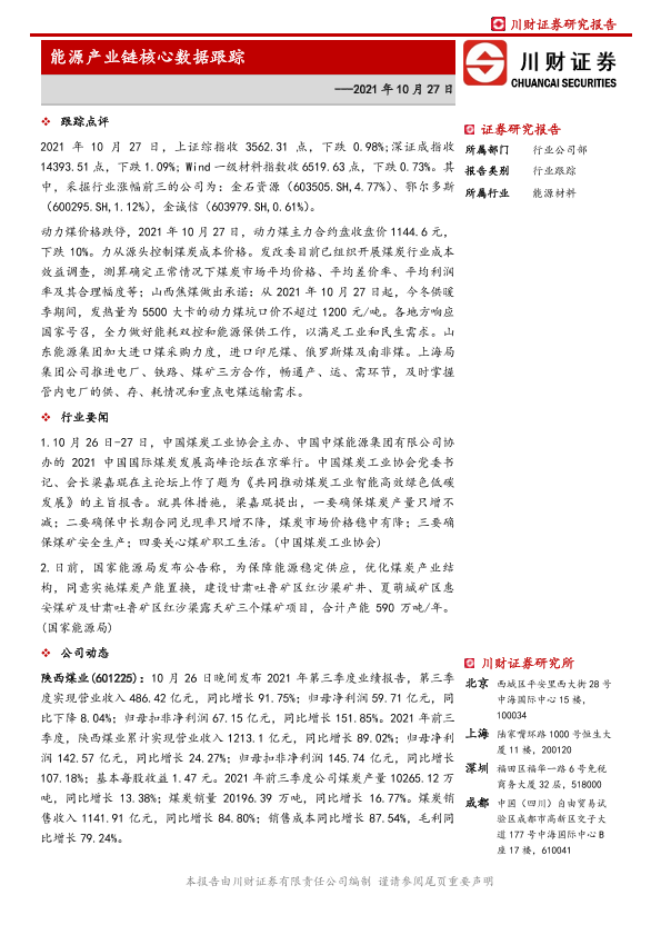 【川财证券】【20211027】能源产业链核心数据跟踪-5页